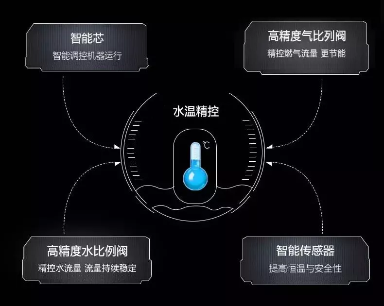 實時反饋調(diào)整,讓溫度更穩(wěn)定。出水溫度感應(yīng)裝置,及時感應(yīng)出水溫度的信號,反饋給智能芯片,與設(shè)定溫度做比較,調(diào)節(jié)燃?xì)狻⒖諝馀浔群屠渌M(jìn)水流量,達(dá)到更大范圍的寬頻恒溫的效果。